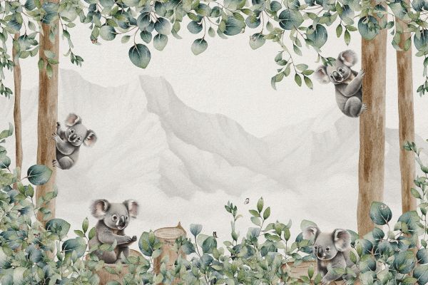 Breng de rust en schoonheid van de Australische natuur in je interieur met ons prachtige behang met koala's en eucalyptusbladeren. Dit luxueuze behang combineert hoogwaardige afbeeldingen van schattige koala's die zich nestelen tussen weelderige groene eucalyptusbladeren. Transformeer je muren in een betoverend kunstwerk met ons koala en eucalyptus behang.