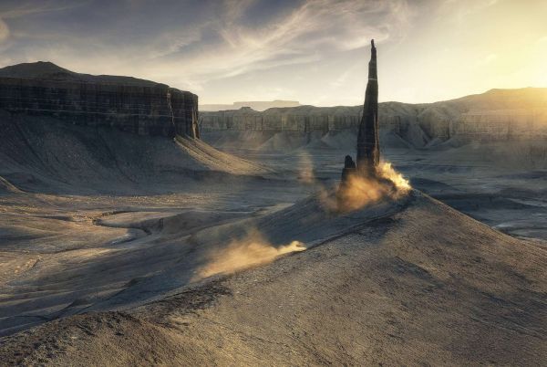 De Utah Badlands zouden zo uit een sciencefictionfilm kunnen komen. Eindeloos, dor land, doorkruist door surrealistisch uitziende rotsformaties.