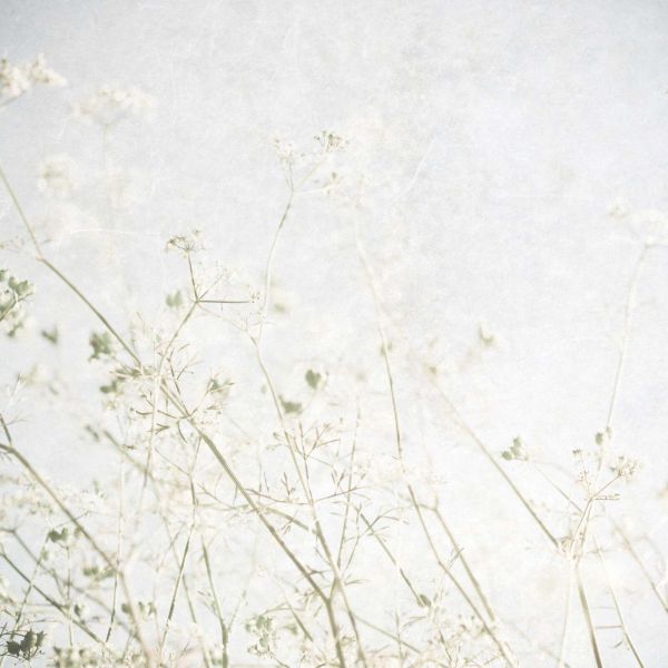 Dit ontwerp vangt het subtiele en bijna gewichtloze moment van een vroege ochtend in een veld vol tere bloei. De fijne stelen en kleine bloempjes lijken haast op te lossen in het zachte licht, alsof ze zweven tussen lucht en aarde. De kleurtinten zijn uiterst verfijnd: gebroken wit, bleekgroen en een zweem van grijsgroen vermengen zich met een haast papieren textuur op de achtergrond. Alles aan dit beeld ademt minimalisme, puurheid en verstilling – zonder opsmuk, zonder drukte.