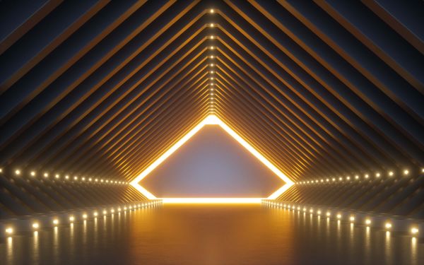 Een lichtgevende 3D tunnel op fotobehang. Doordat de tunnel een 3D effect heeft creëert dit behang meer diepte in de kamer.