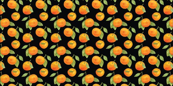 Een patroon van waterverf mandarijnen op een zwarte achtergrond.