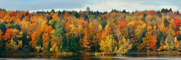 Fotobehang - Meer met herfstbomen