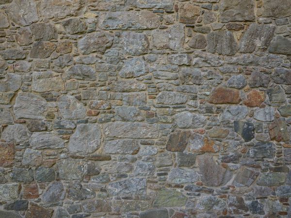 Het dominante grijs gemengd met een paar kleurrijke accenten, zoals op een middeleeuwse kasteelmuur