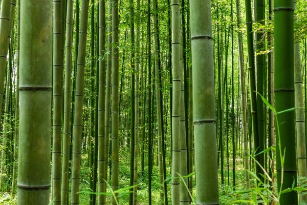 Een foto waarbij je je midden in het prachtige groene bamboebos bevindt.