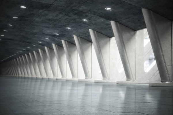 Fotobehang van een lege hal met moderne architectuur