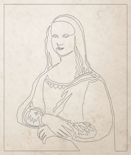 Het beroemde schilderij "Mona Lisa" op een prikbord. Een iconische glimlach gevangen in enkele lijnen, deze tekening verandert een wereldberoemd portret in een modern lijnenspel. Haal dit verfrissende design nu in huis!