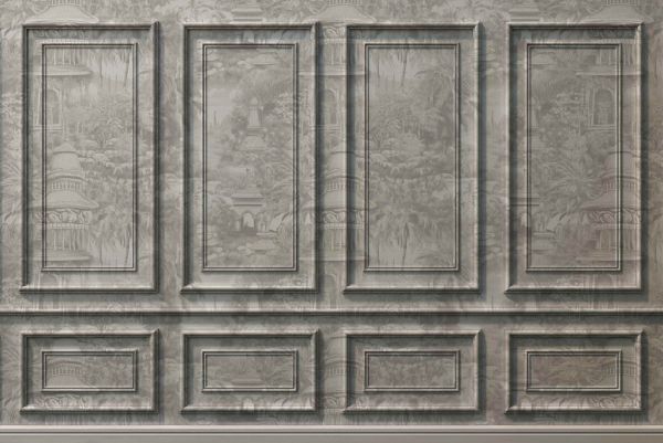 Deze serie toont een rustig monochroom panorama van een klassieke tuin, waarin flora en architecturale elegantie samengaan. De grijstinten geven de scènes een tijdloze charme, terwijl elk paneel de kijker uitnodigt om een ander deel van deze serene wereld binnen te stappen.