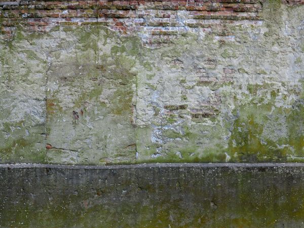 Mos op een oude muur. Door het mos ziet de muur er levendig uit.