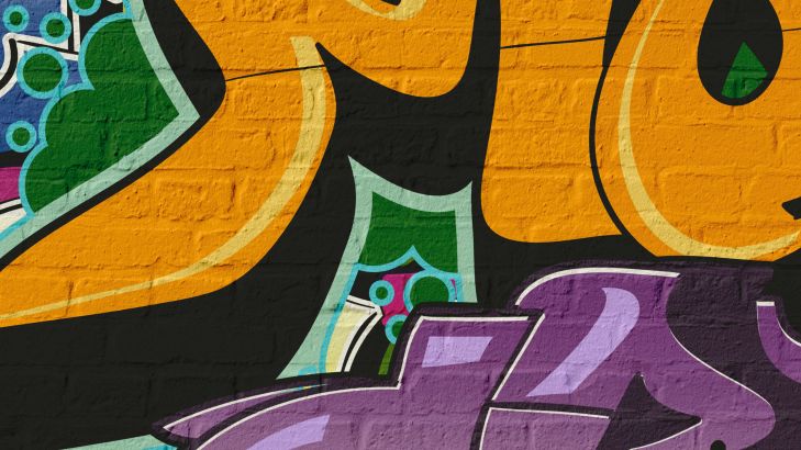 Gave muur met graffiti. Met dit fotobehang in jouw woning creëer je direct meer kleur in huis.