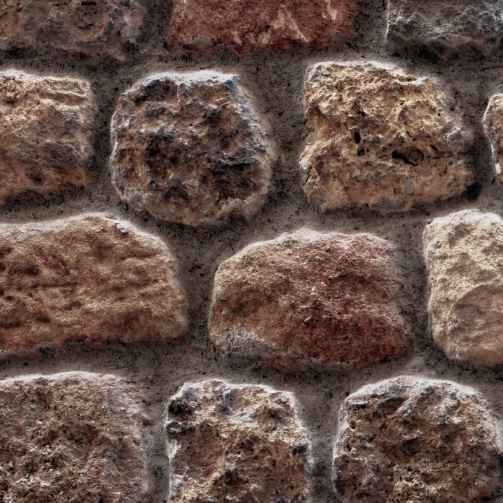 Muur van verschillende grote stenen. Combineer dit in huis voor een unieke look.