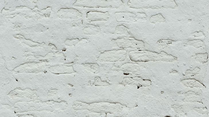 Muur met wit stucwerk en muurankers. Door de close-up zijn de details op deze muur goed te zien.
