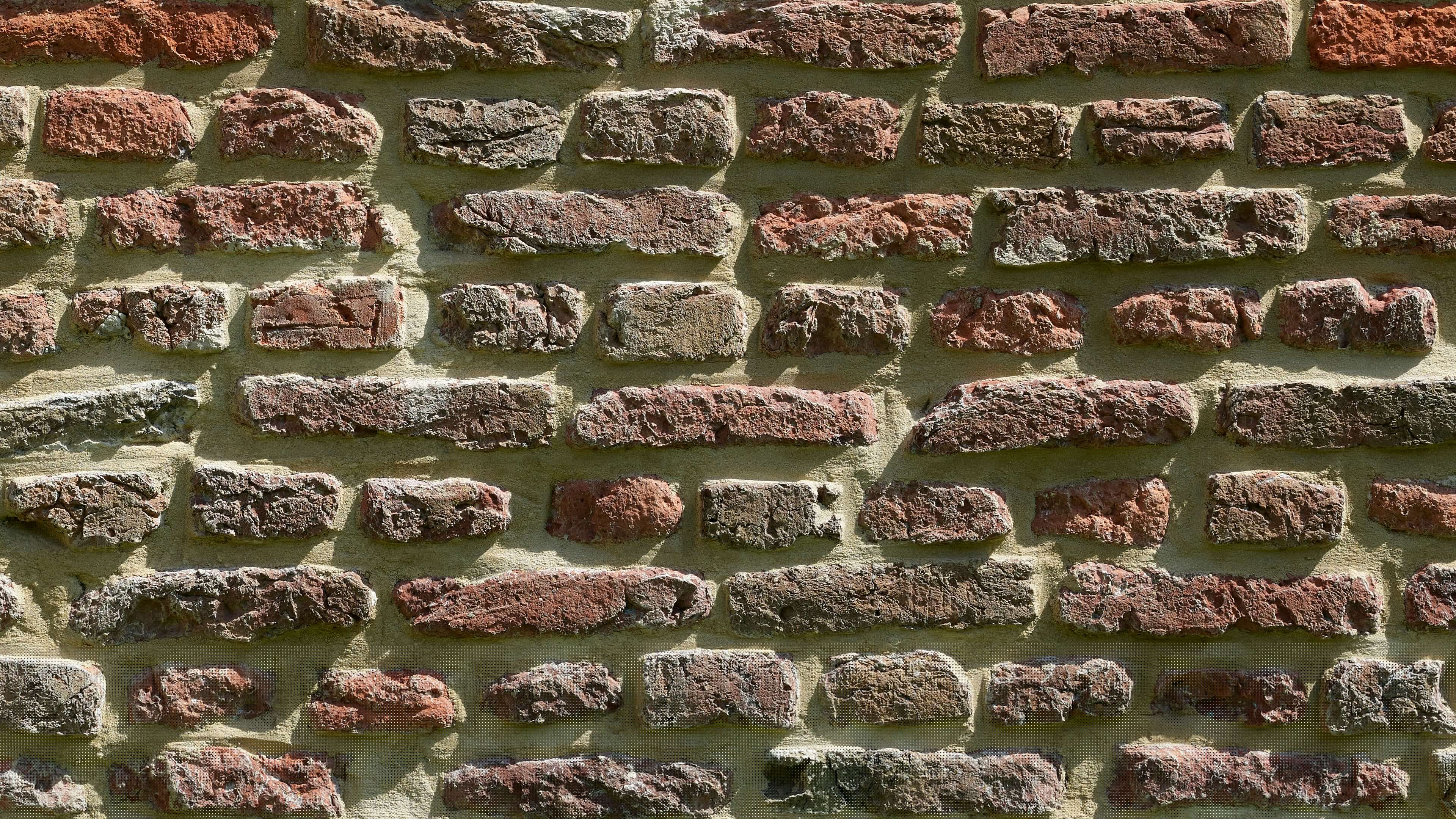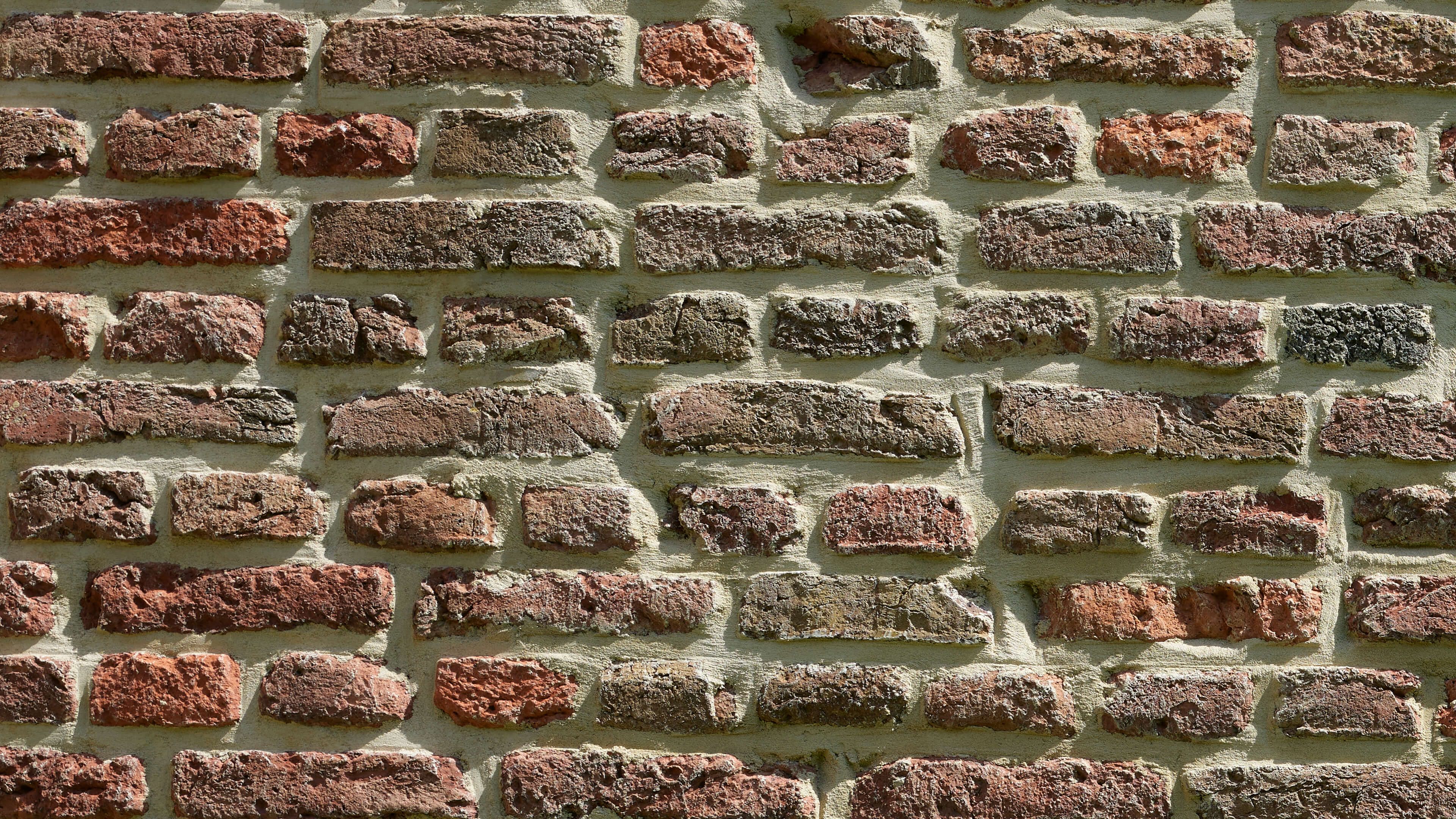 Karakteristieke oude muur van bakstenen met voegen die diepte geven aan de muur