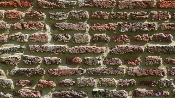 Muur van oude bakstenen in verschillende materialen
