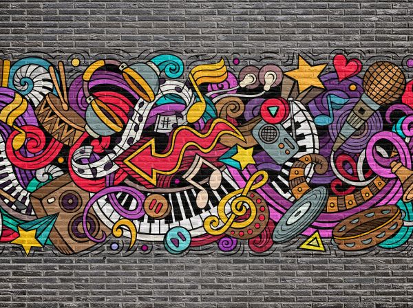Dit fotobehang werd met succes op een houten muur aangebracht. De voegen tussen de houten latten werden opgekit en de muur was eerder al geschilderd. We hebben enkel ontvet en behangen. Door de baksteenstructuur en de grafiti zijn de oneffenheden van houten latten helemaal niet zichtbaar.