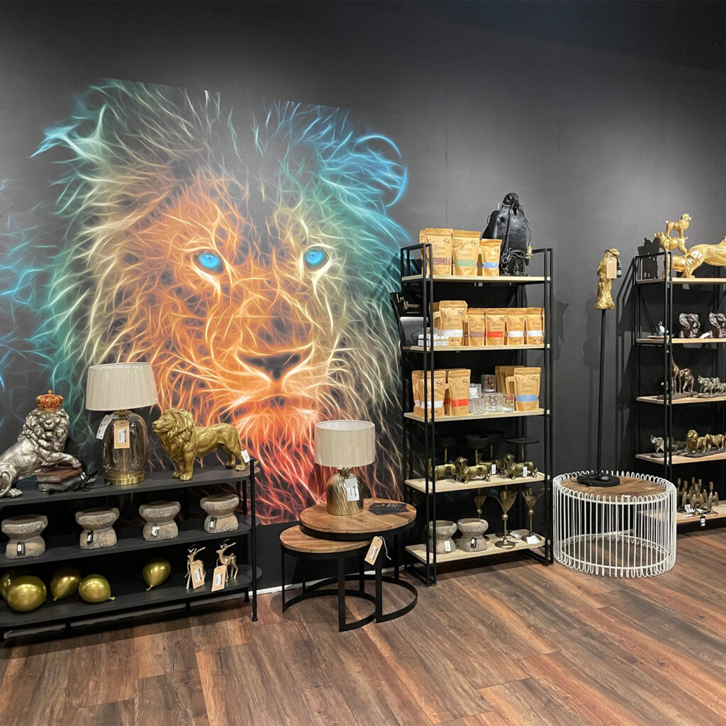 Op nummer 10 staat dit geweldige eindresultaat die wij van Cisca hebben ontvangen. Door de zwarte achtergrond vallen de verschillende kleuren vlammen in de leeuw extra goed op. Dit fotobehang is ook goed te combineren in de kinderkamer.