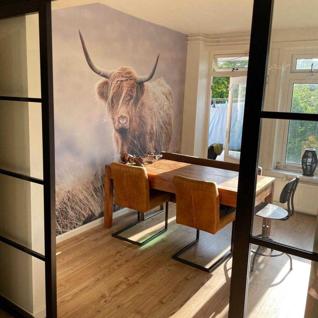 Deze Schotse hooglander in de natuur verdient een derde plek. Schotse hooglanders op fotobehang zijn erg populair. Door de indrukwekkende uitstraling van deze dieren maken ze van de muur een echte eye-catcher. En dat is zeker te zien bij deze inzending.