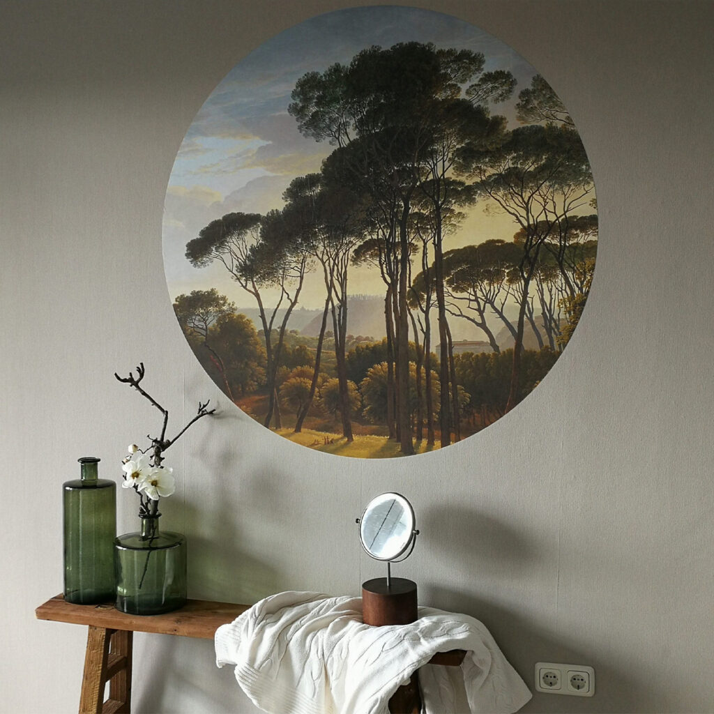 Op nummer 8 staat deze behangcirkel van een Italiaans landschap met parasoldennen. Met een behangcirkel decoreer je je woning in een handomdraai. Het is ideaal wanneer je een eye-catcher aan de muur wilt hebben maar niet je hele muur wilt voorzien van behang.