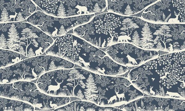 Door het doorlopende patroon en de rustige contrasten past deze illustratie in verschillende ruimtes, zoals een woonkamer, slaapkamer of studeerkamer, waar het een natuurlijke en ontspannen sfeer toevoegt. Ook in een hal of eetruimte kan het ontwerp zorgen voor een warm en uitnodigend geheel. Combineer met planten, linnen texturen en zachte verlichting om de serene bosbeleving te versterken.