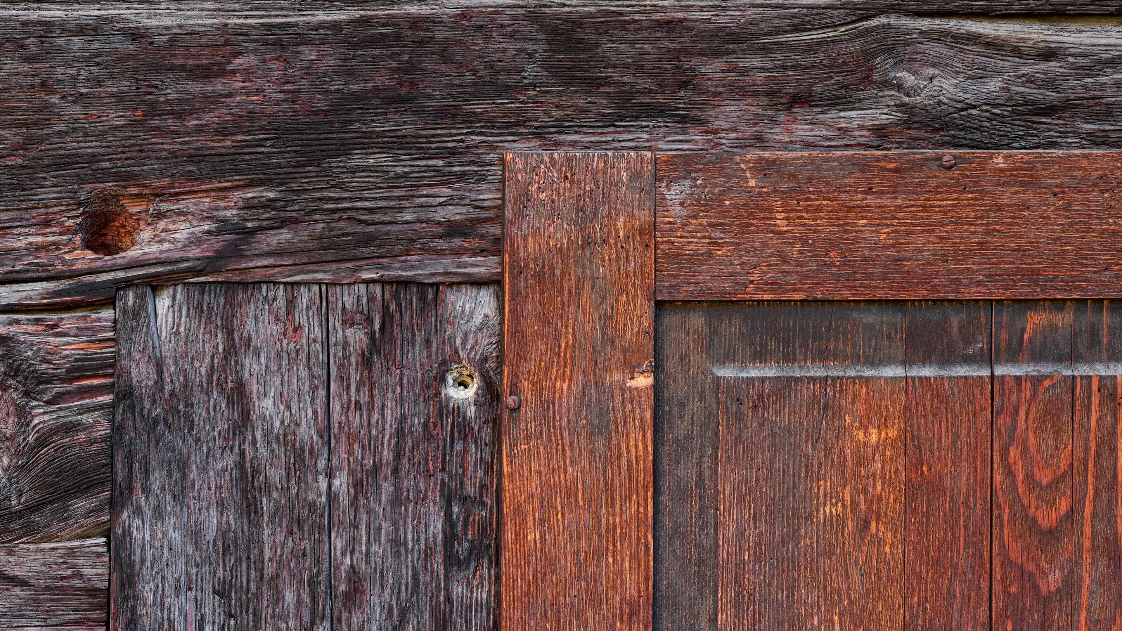 Oud hout met bloemen in verschillende materialen