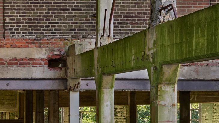 Oude verlaten fabriek. Met dit fotobehang in huis creëer je een industriële look.