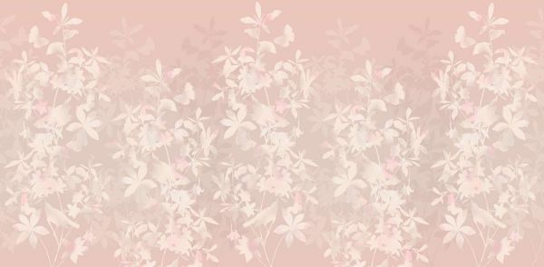 Een verfijnd ontwerp met subtiele bloemen en vlinders, verspreid over zachte tinten. De kleuren stralen een delicate en serene sfeer uit, perfect voor een ruimte die zowel rust als elegantie nodig heeft.
