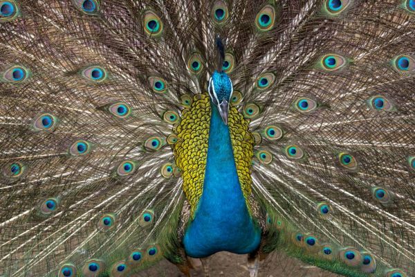 Pauw met opgezette veren