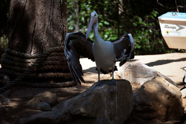 Een australische pelikaan op een steen. Combineer dit fotobehang in de woonkamer of slaapkamer.