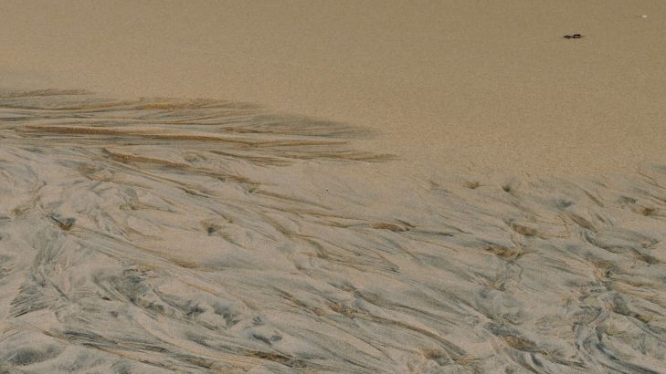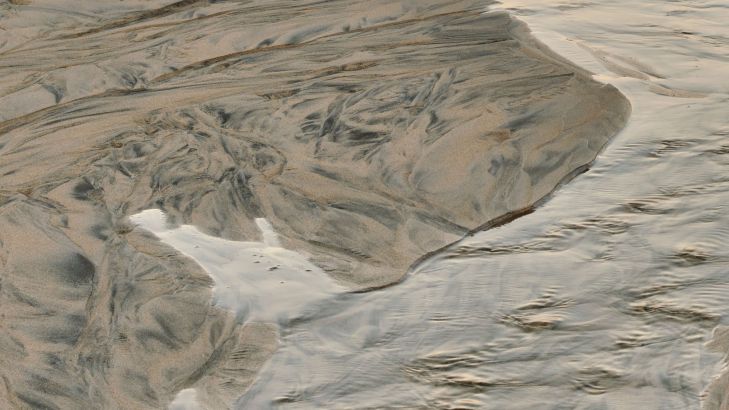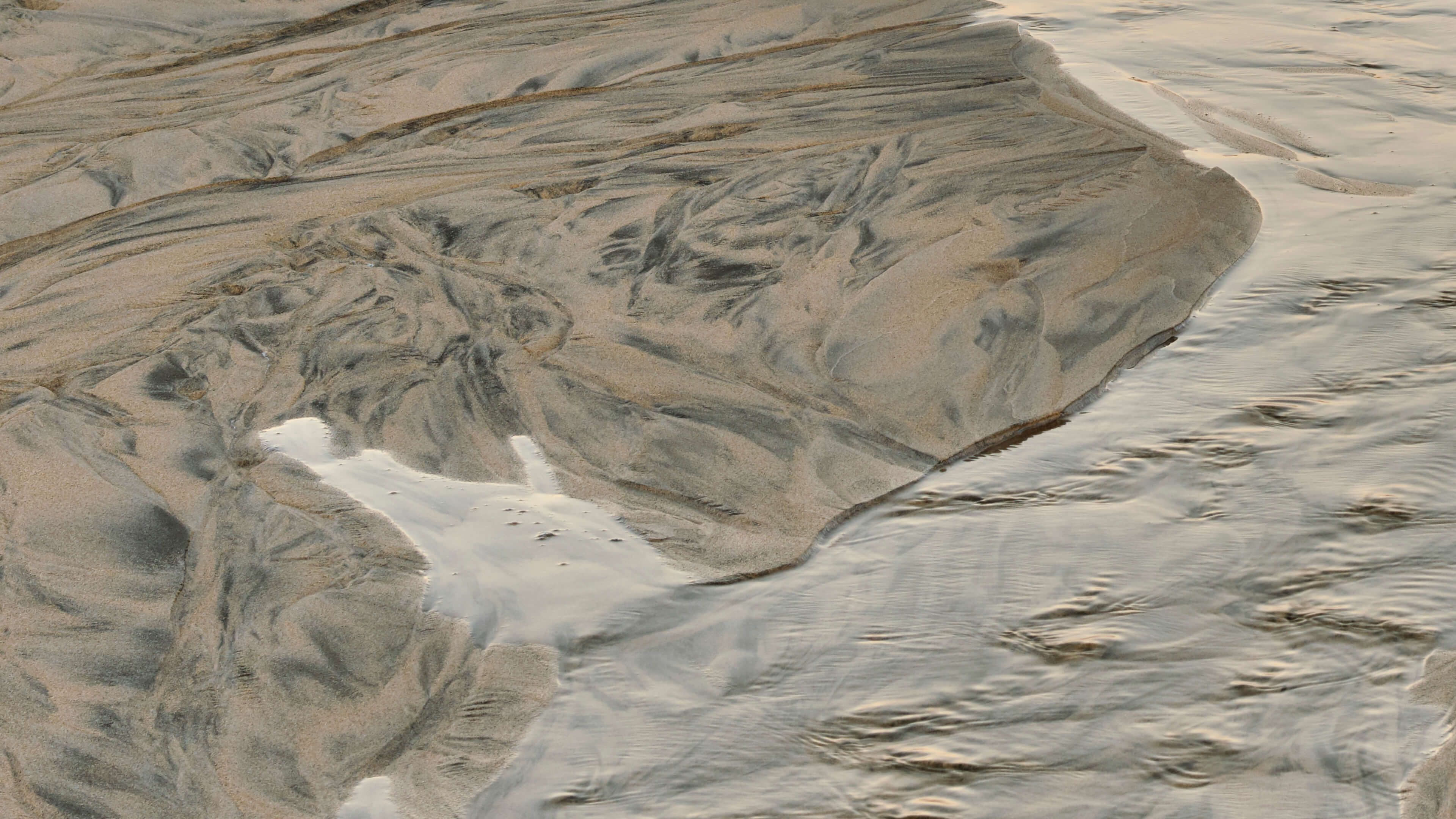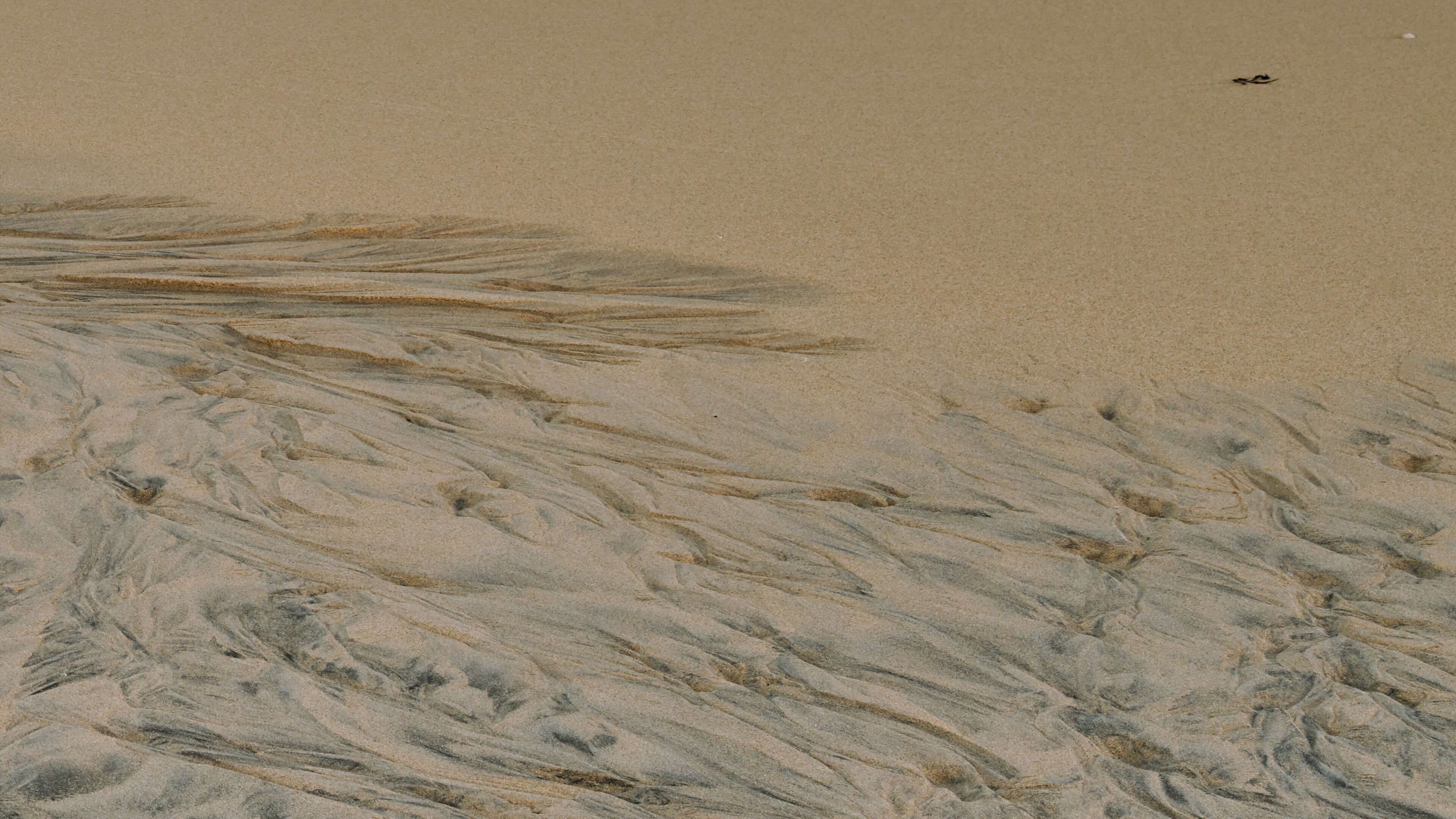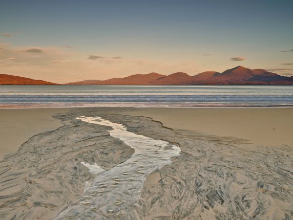 Prachtig zandstrand met ribbels en bergen op de achtergrond