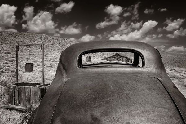 Fotobehang in het zwart-wit van een afgelegen huis. Combineer dit in bijvoorbeeld de slaapkamer.