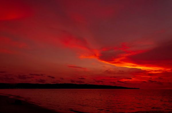 Een mooie afbeelding van een rode zonsondergang bij het strand.