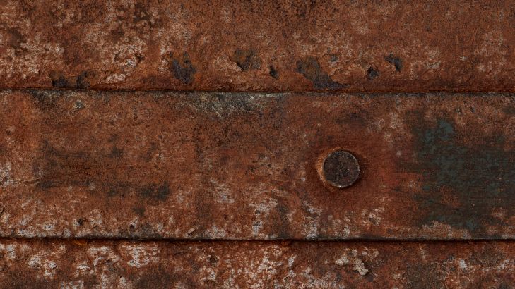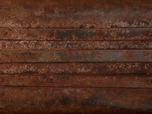 Mooie roestige strips met klink nagels op ijzeren plaat. Breng dit fotobehang aan in jouw slaapkamer of woonkamer.