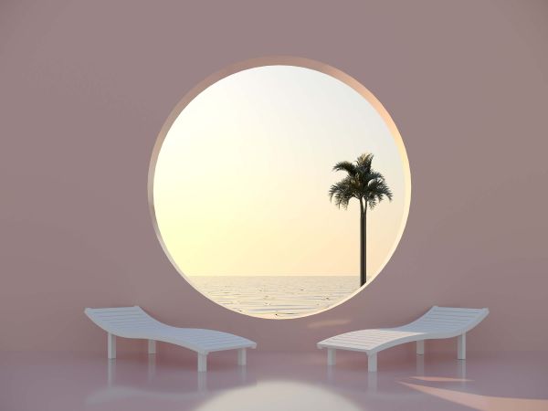 Een mooie illustratie van een ronde opening uitkijkend op het water.