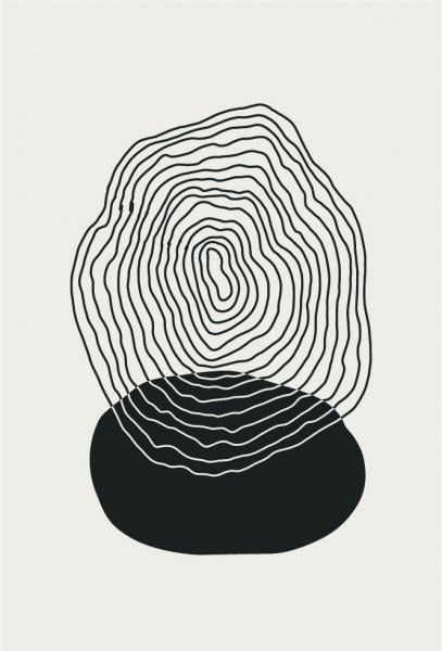 Een mooie illustratie van een zwarte cirkel en zwart-witte lijnen.