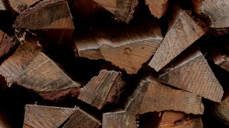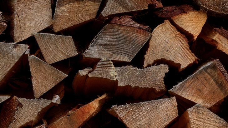 Ronde stapels hout in verschillende materialen