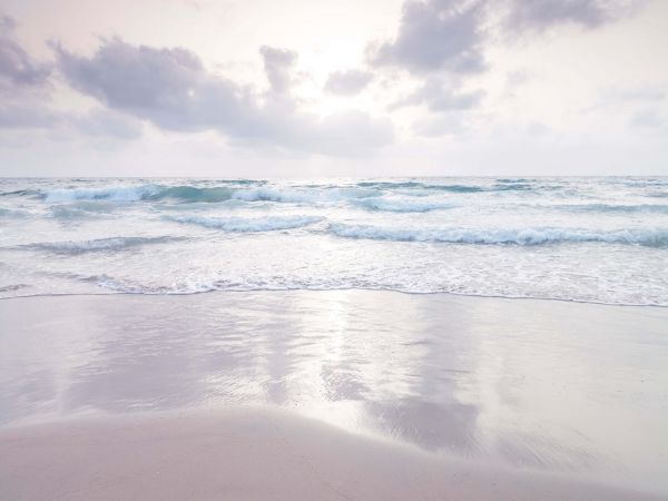 Rustig strand met hoge golven tijdens een bewolkte dag. Combineer dit fotobehang in bijvoorbeeld de werkkamer.