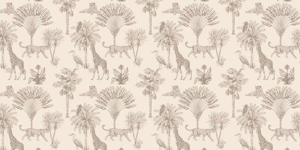 Breng de wilde schoonheid van de savanne naar je interieur met het Safari jungle behang. Dit patroon neemt je mee op een avontuurlijke reis waar je exotische dieren zult tegenkomen. De warme beige tinten creëren een rustgevende en natuurlijke sfeer in elke kamer. Of je nu een kinderkamer wilt transformeren of een vleugje avontuur aan je woonruimte wilt toevoegen, dit behang is de perfecte keuze.
