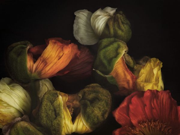Fotobehang - Samengestelde ontluikende klaprozen