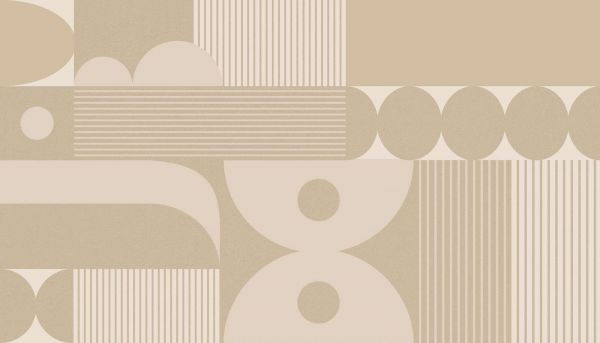 Zachte beige tinten vloeien samen met geometrische precisie in dit ontwerp. De eenvoud van de vormen (cirkels, lijnen en halve bogen) resoneert met een natuurlijke en minimalistische sfeer, die rust en openheid in de ruimte brengt.