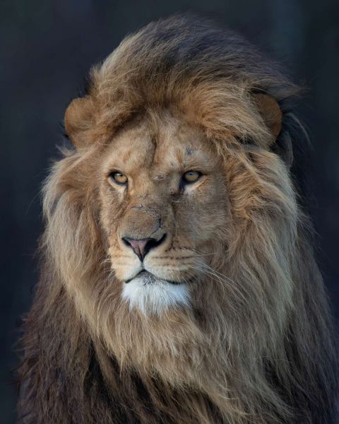 De diepe, intense blik van deze leeuw is als een venster naar de ziel van de wildernis.
