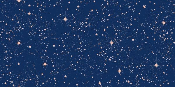 Een diepblauwe achtergrond bezaaid met talloze fonkelende sterren en subtiele lichtuitbarstingen. Het patroon ademt magie, rust en oneindige ruimte.