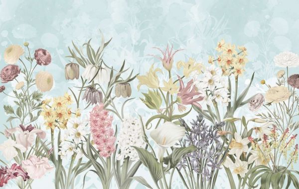 Fotobehang - Spring Flowers - Misty Aqua