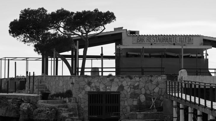Smalle steiger naar een klein restaurantje op een eiland