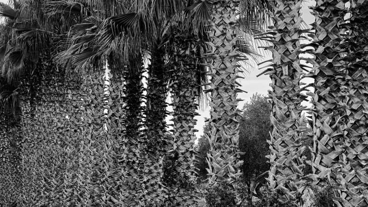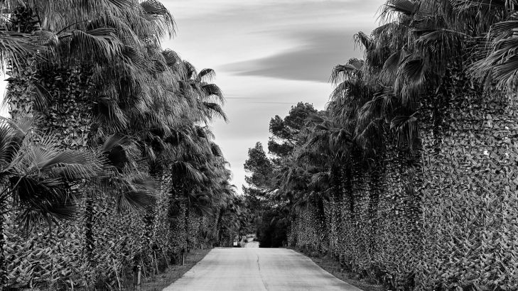 Straat met palmbomen in zwart - wit
