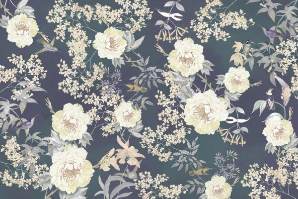 Een verfijnde compositie van natuurlijke schoonheid, waarin bloemen, vogels en botanische elementen in een harmonieuze balans zijn weergegeven. Subtiele kleuren en gedetailleerde patronen zorgen voor een elegante en tijdloze uitstraling die iedere ruimte transformeert.