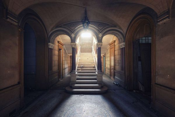 De prachtige trap van een prachtig kasteel in Frankrijk. Vroeger maakte het deel uit van een wijnmakerij, maar onlangs was het hét toneel van vele illegale feesten en raves. Gelukkig heeft de architectuur alles goed overleefd en wordt het nu gerenoveerd.