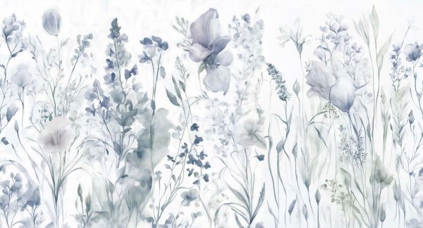 Koel, kalm en verfijnd – deze blauwe bloemenweide brengt sereniteit in elke ruimte. De aquarelstijl laat tinten als ijsblauw, indigo en zacht paars in elkaar overvloeien, met tere bloemvormen die een gevoel van stilte en koelte oproepen.