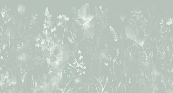 Een heldere, verkwikkende interpretatie van aquarelbloemen, waarin mintgroene en ijsblauwe schakeringen subtiel worden gecombineerd met zachte witte nuances. Deze variant ademt jeugdigheid en een sprankelende energie uit.