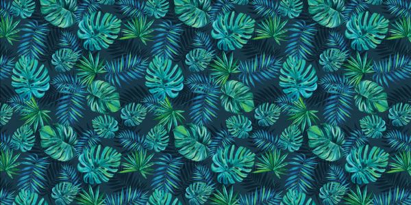 Een patroon met monstera en palmbladeren van aquarel.