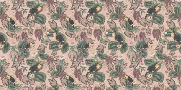 Fotobehang - Tropische Jungle vogels & Toekans - roze
