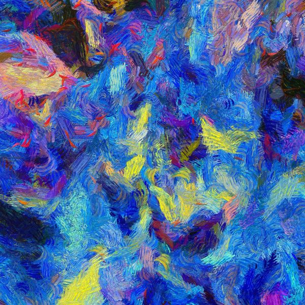 Een afbeelding van een schilderij met verfvegen in verschillende kleuren.
